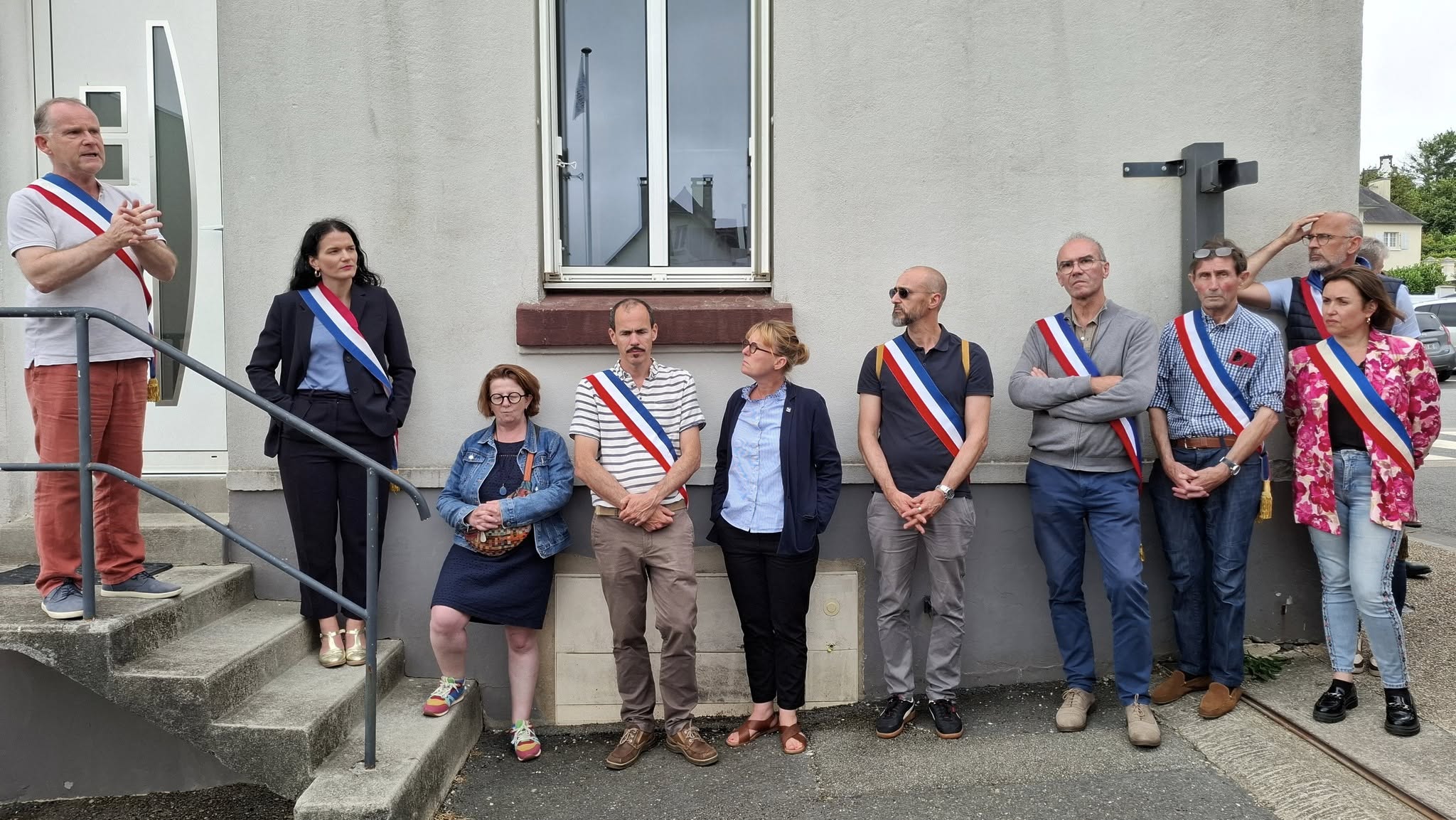 Mobilisation ce 27 juin 2025 des élu.e.s, profs, parents, élèves, citoyens à Pont-de-Buis pour le maintien de la 3ème classe de 6ème au collège François Collobert avec Isabelle Maugeais élue à Pont-de-Buis, conseillère communautaire et conseillère départementale communiste, Gladys Grelaud, conseillère régionale communiste, Pascal Prigent, maire socialiste de Pont-de-Buis, Mélanie Thomin, députée socialiste-NFP de la 6e circonscription.