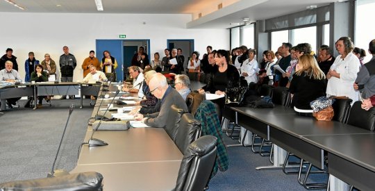 Le Conseil de surveillance de l’hôpital de Morlaix a été ajourné après l’intervention de l’intersyndicale et du comité d’usagers. (Le Télégramme/Sophie Guillerm)