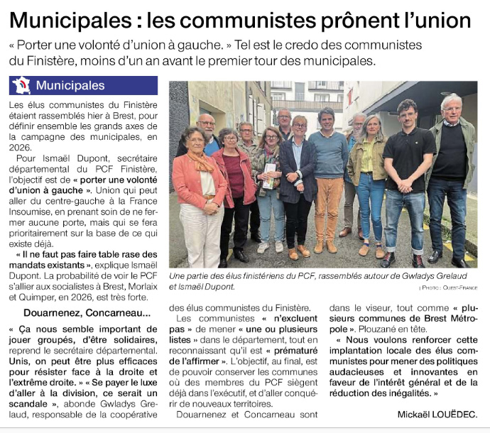 Municipales: les communistes prônent l’union dans le Finistère – Ouest-France, Mickaël Louedec, 5 juin 2025