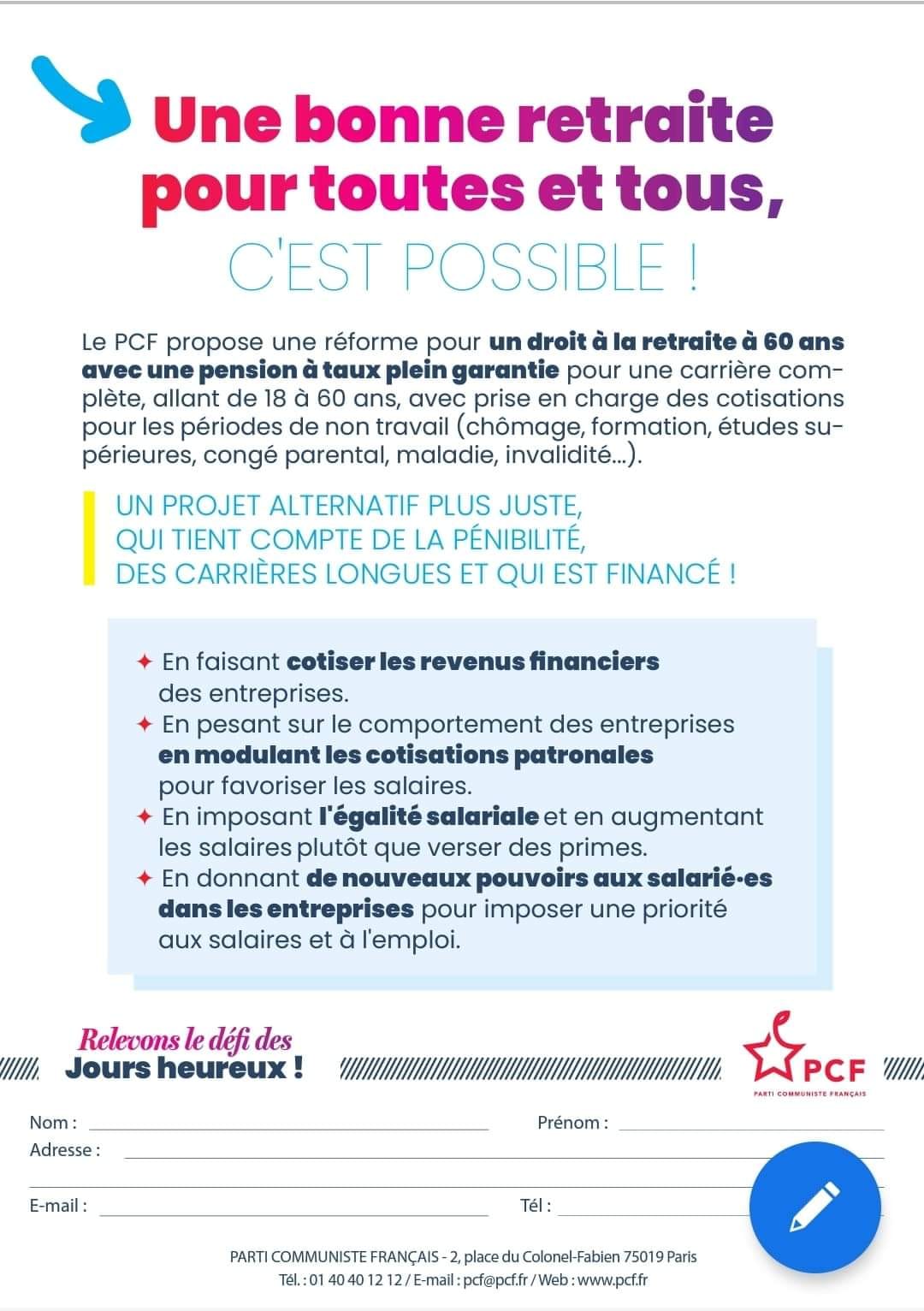 PCF – Soutien à la mobilisation du 19 janvier avec les syndicats et les salariés contre la réforme des retraites Macron