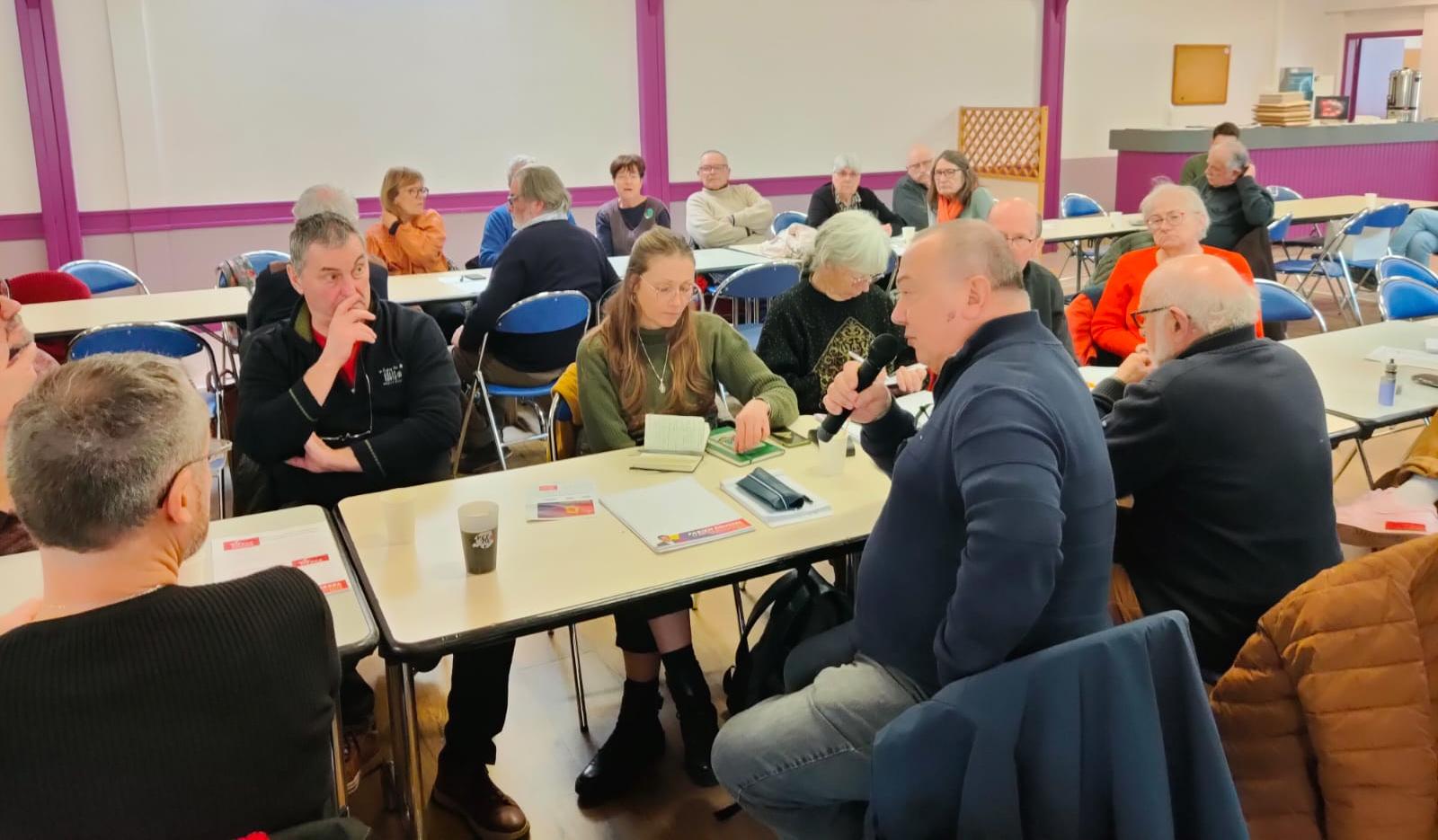 Une chaleureuse assemblée générale de la fédération du Finistère du Parti communiste français (860 adhérents, dont 63 nouvelles adhésions au PCF dans le Finistère en 2023) à Kernevel ce samedi 10 février, en présence de Vincent Boulet, dirigeant national du PCF, responsable du secteur International et coordonnateur du Projet du PCF pour les Européennes de juin 2024. 70 camarades y ont participé. L’AG avait été ouverte par Jacques Rannou, maire délégué de la commune associée de Kernevel (première commune à faire élire une femme maire dans le Finistère, et elle était communiste: Marie Mahé, ancienne résistante) et secrétaire de la section de Rosporden. Le maire de Rosporden, Michel Loussouarn, par ailleurs notre collègue dans le groupe de gauche au Conseil Départemental, nous a fait le plaisir de nous saluer le midi pour l’apéritif. Merci à notre camarade de la section du PCF Carhaix-Huelgoat Hervé Ricou pour ses photos et merci à tous les camarades qui ont pu se rendre disponible à cette assemblée générale du PCF Finistère dans le sud-Finistère et à Vincent Boulet pour ses exposés très clairs, riches et stimulants sur les enjeux des élections européennes et de la situation internationale.
