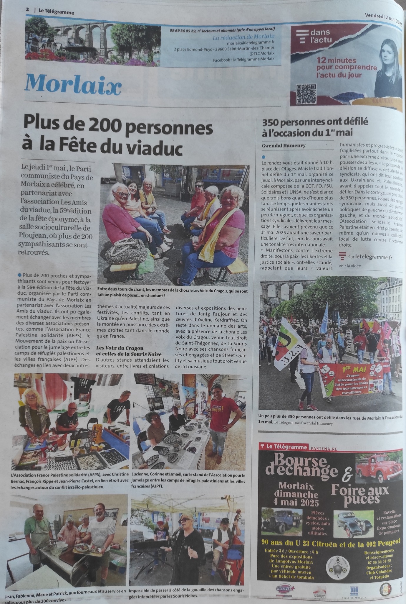 Pleine page sur le 1er mai revendicatif et festif à Morlaix dans le Télégramme du jour.
