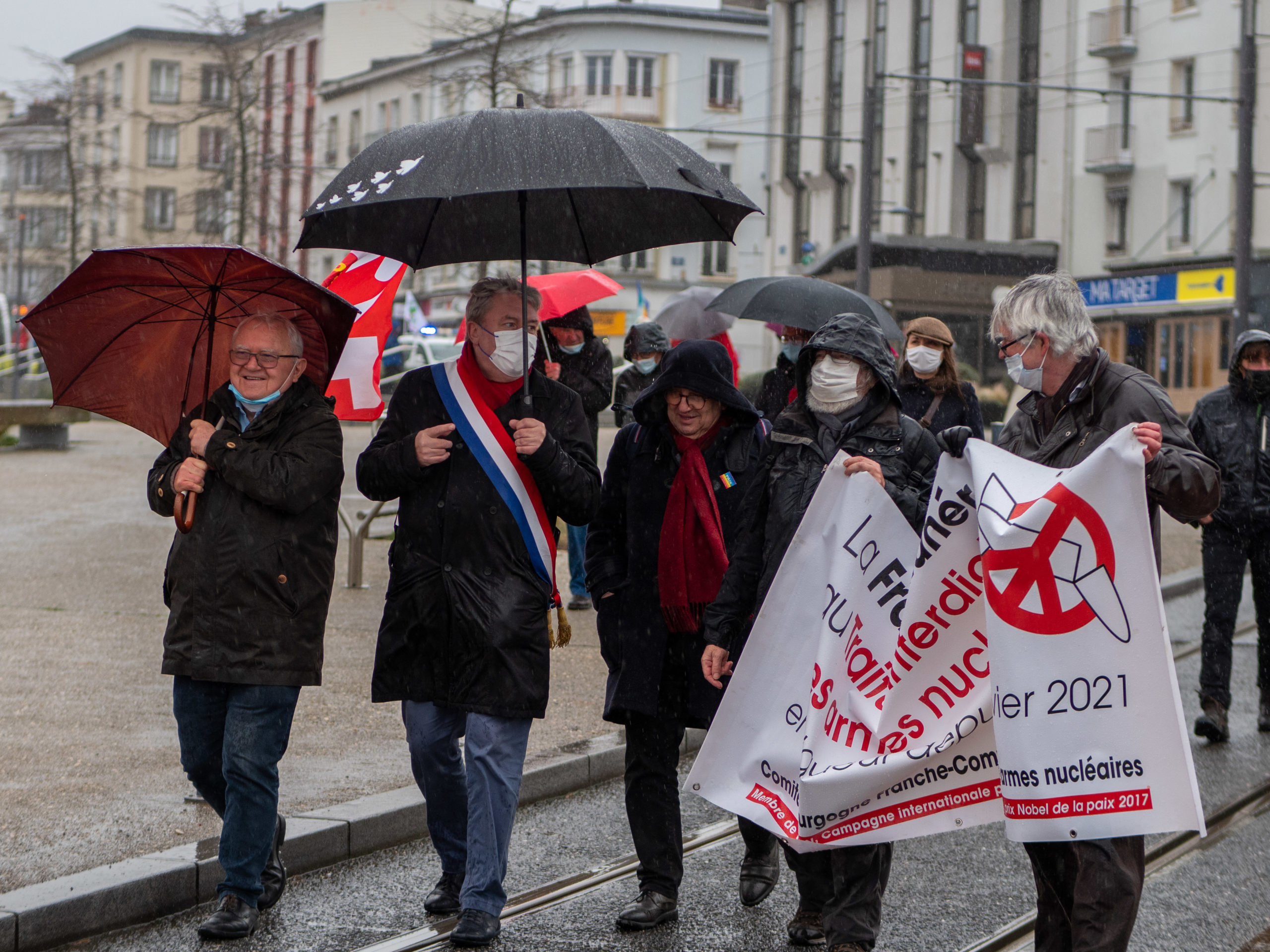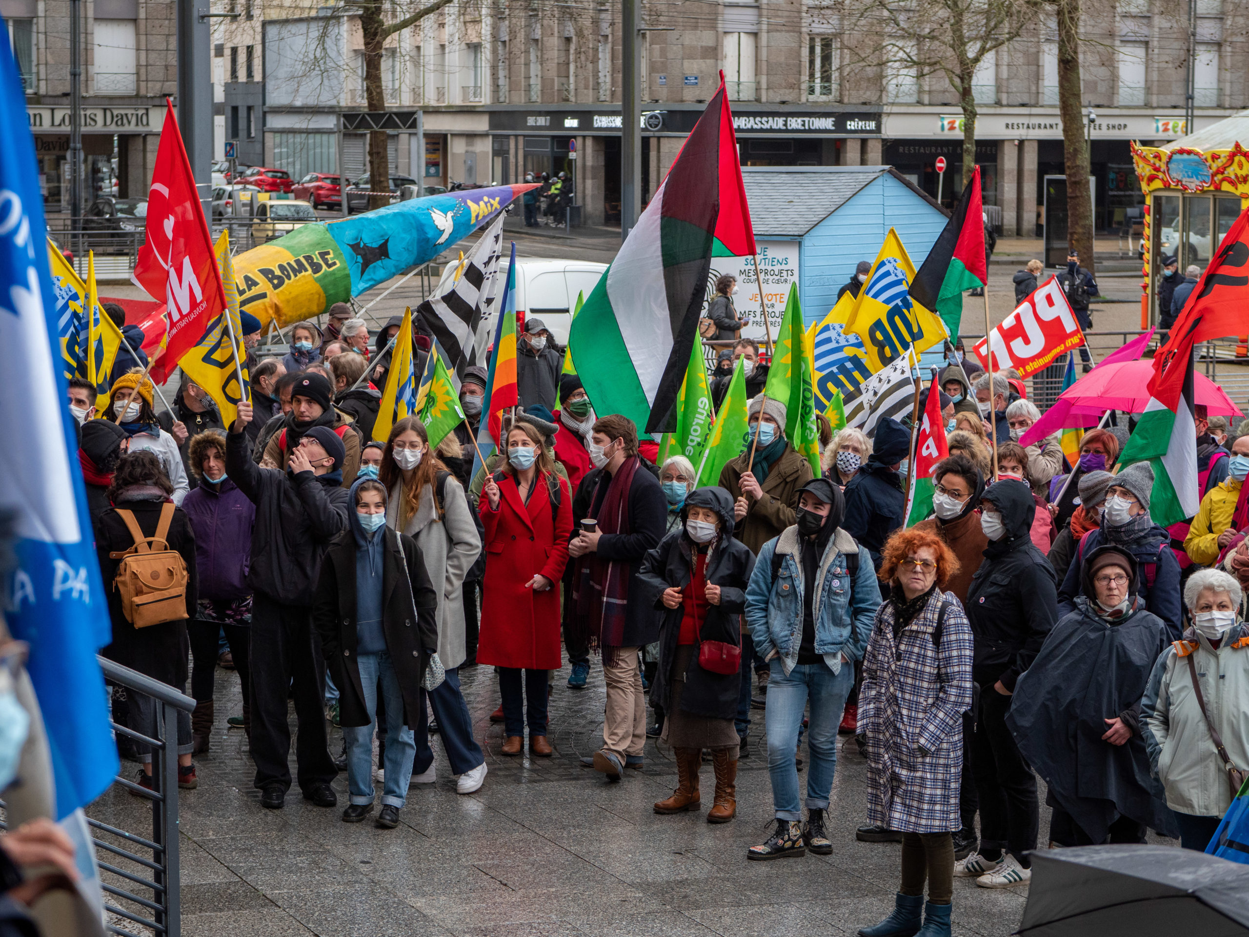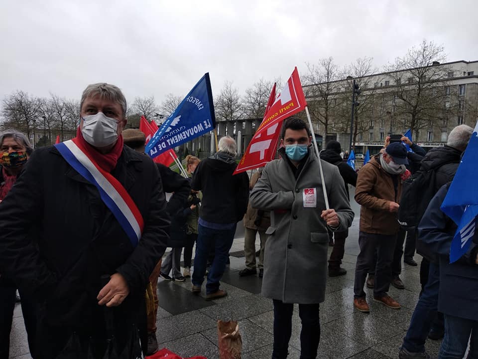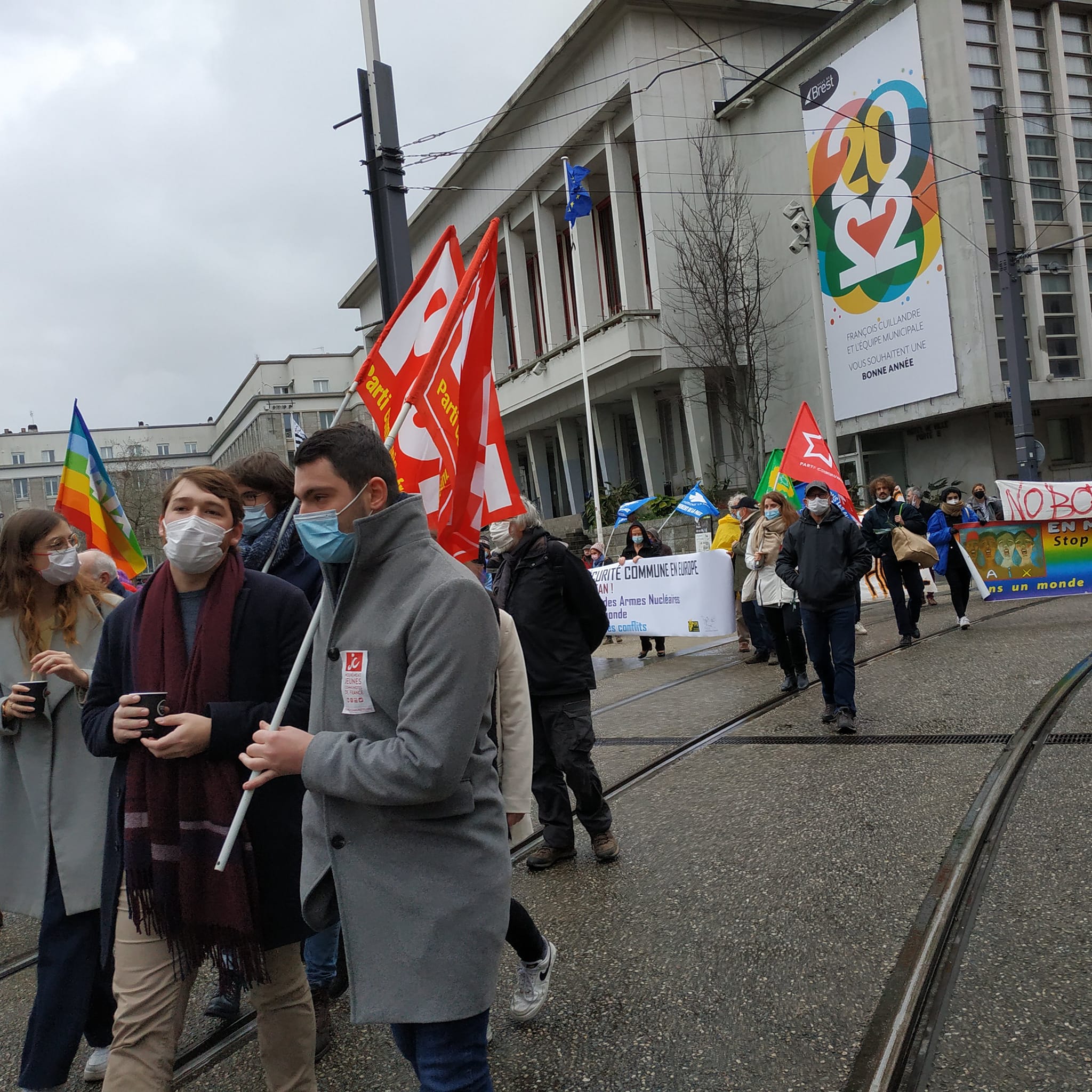 Dans la manif de Brest du 9 janvier pour la Paix, le désarmement nucléaire, pour une autre politique européenne à l’occasion du Sommet des Ministres des affaires étrangères et de la défense européens réunis à Brest du 12 au 14 janvier pour le début de la présidence française de l’Union et sur invitation d’Emmanuel Macron.