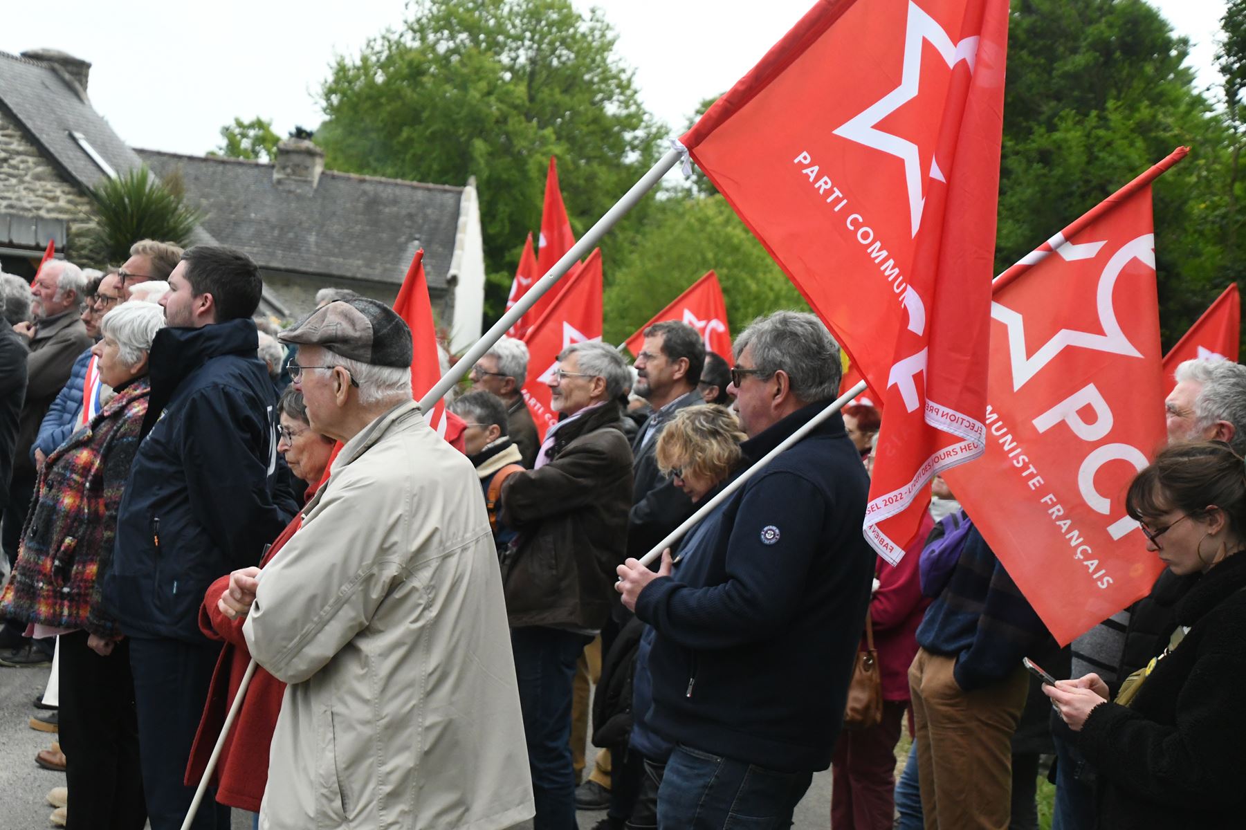 Nous étions 200 personnes, réunis à l’appel du PCF Finistère, avec des prises de discours du PCF (Ismaël Dupont et Pierre-Yves Thomas), de la JC (avec son secrétaire départemental Taran Marec, élu à Brest), de l’ANACR (Leïla Sarazin), de la FSU (Antoine Gauchard) et de la CGT (Jean-Yvon Ollivier), des maires de Berrien (Hubert Le Lann), Plounéour-Menez (Sévastien Marie), et Huelgoat (Jacques Thepaut) une présence des familles de résistants de Berrien et Trédudon-le-Moine, d’anciens combattants, une lecture du poème de Marianne Perrot sur les résistants de Trédudon-le-Moine, le chant des partisans interprété à la guitare par Patricia Paulus, a présence de la conseillère régionale communiste Gladys Grelaud, des conseillers départementaux Kévin Faure et Armelle Huruguen, co-présidents du groupe Finistère et Solidaires, et Gaëlle Zaneguy, des militants des Ecologistes, de l’AFPS, de l’UDB, du PS, de militants cégétistes, et bien sûr de nombreux militants communistes de tout le département du Finistère (Crozon, Châteaulin, Brest, Scaër, Pays Bigouden, Quimper…) et des Côtes d’Armor. Une cérémonie d’hommage aux idéaux et valeurs de la Résistance très émouvante et réussie, qui s’est terminée par un pot de l’amitié.