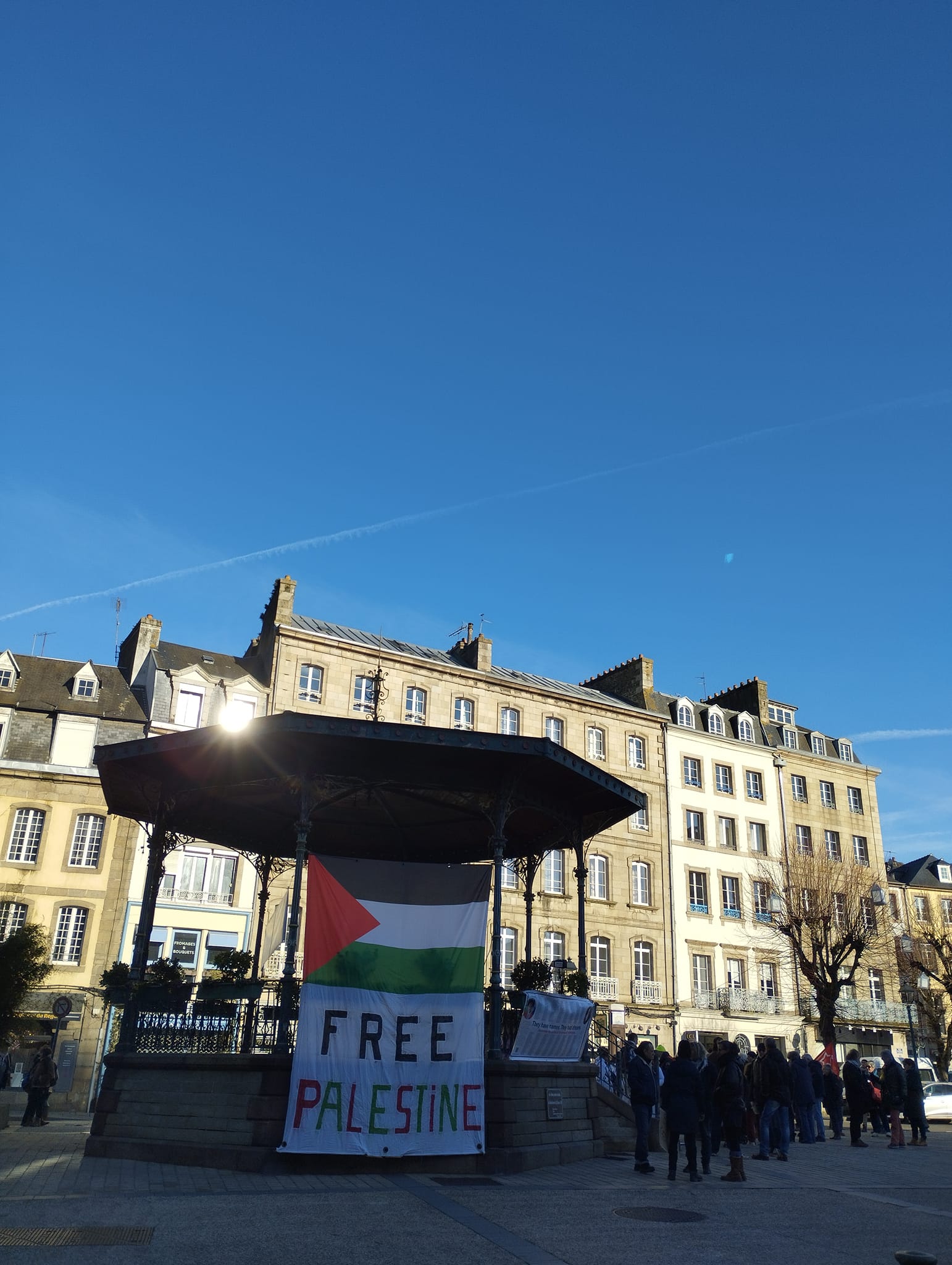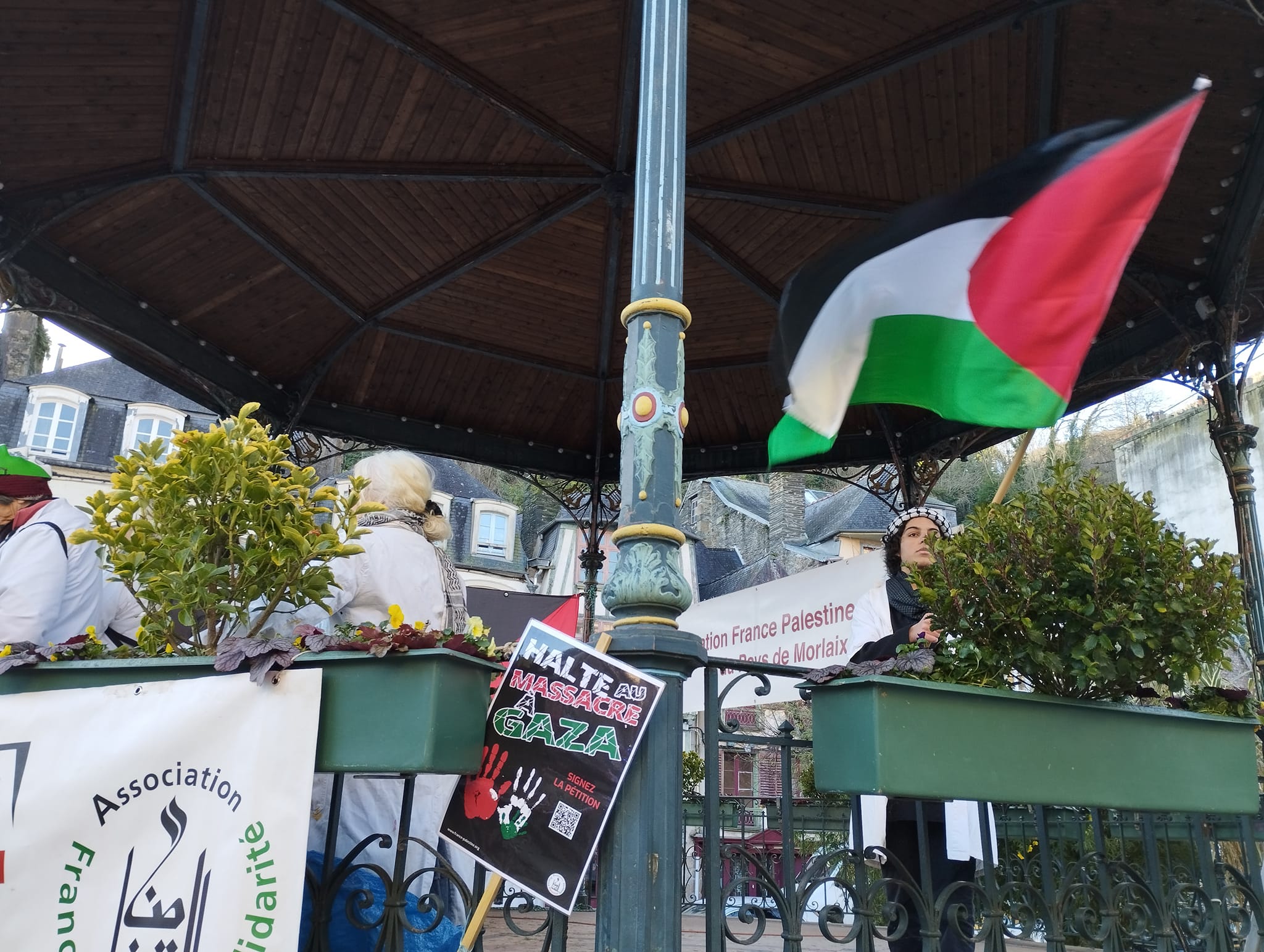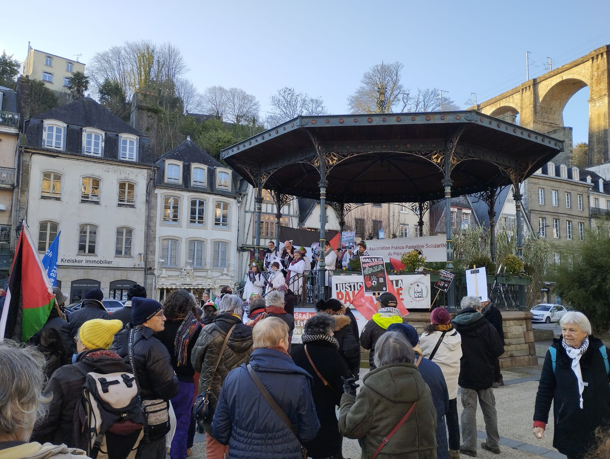 Une belle mobilisation des Morlaisiens en solidarité avec les Palestiniens de Gaza et pour exiger un cessez-le-feu immédiat à Gaza et que soient jugés les crimes de guerre de l’armée israélienne et du gouvernement israélien ce samedi 13 janvier à Morlaix.