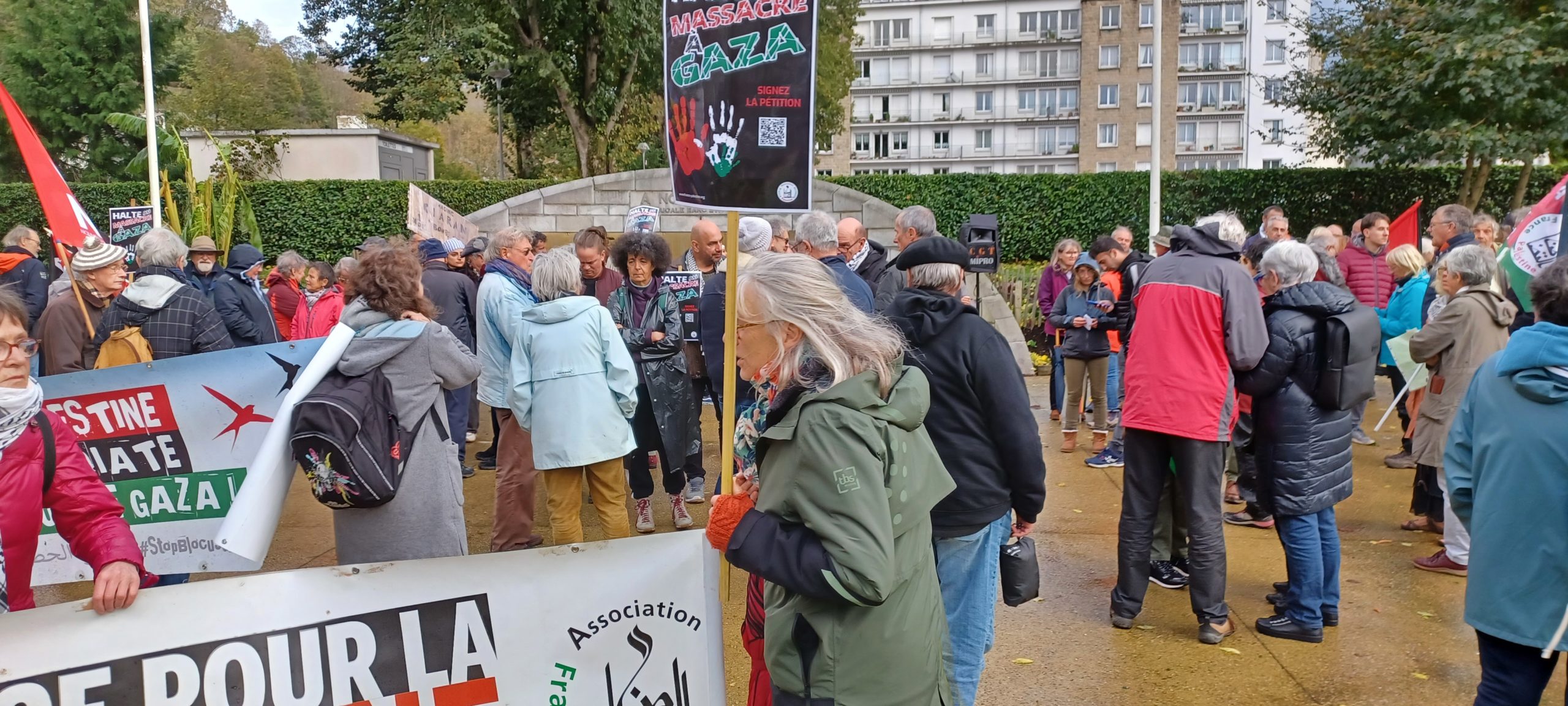 Manif pour un cessez-le-feu immédiat à Gaza et la fin des massacres. Nos camarades du PCF Morlaix étaient présents dans la manifestation le samedi 4 novembre qui a réuni 300 personnes. Photos de Jean-Luc Le Calvez.