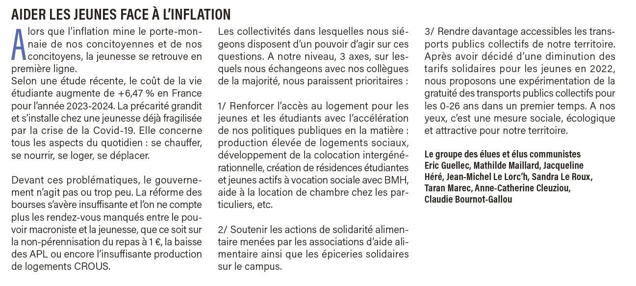 Aider les jeunes face à l’inflation – Magazine Sillages, Tribune des élu.e.s communistes de Brest