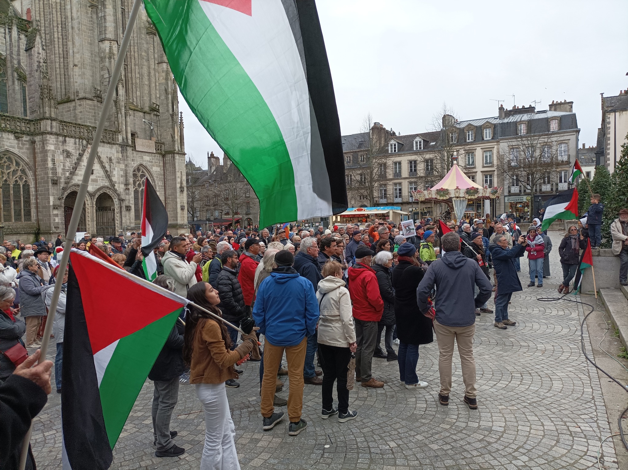 Plus de 500 personnes réunies à Quimper ce 11 novembre 2023 à l’appel d’un grand nombre d’organisations dont le PCF et la JC 29 pour un cessez-le-feu à Gaza, pour une paix juste et durable en Israël et Palestine.