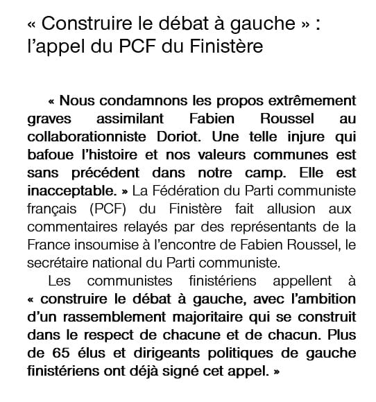 « Construire le débat à gauche, l’appel du PCF du Finistère » – Ouest-France, 25 septembre 2023