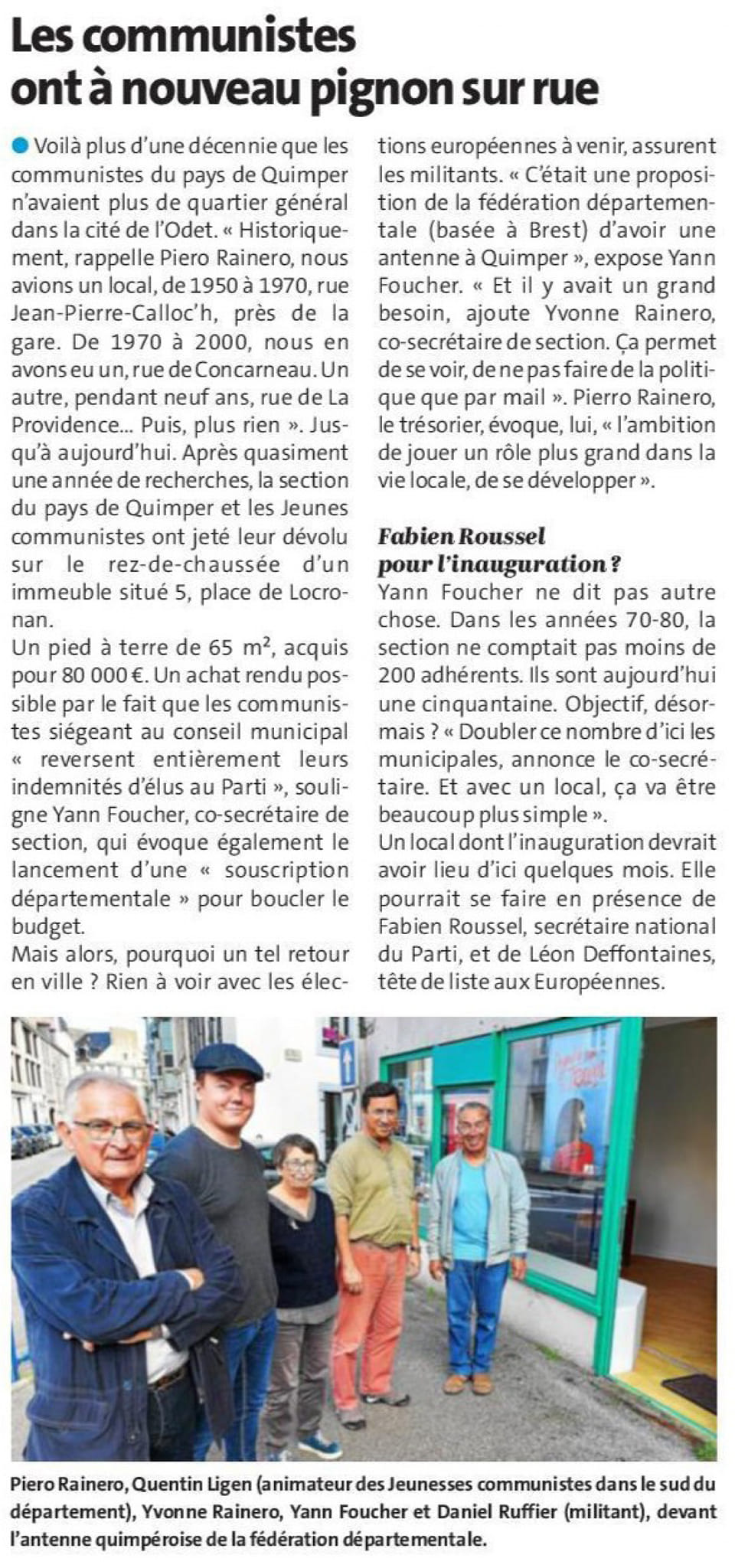 Quimper – Les communistes ont à nouveau pignon sur rue – Le Télégramme, 12 octobre 2023